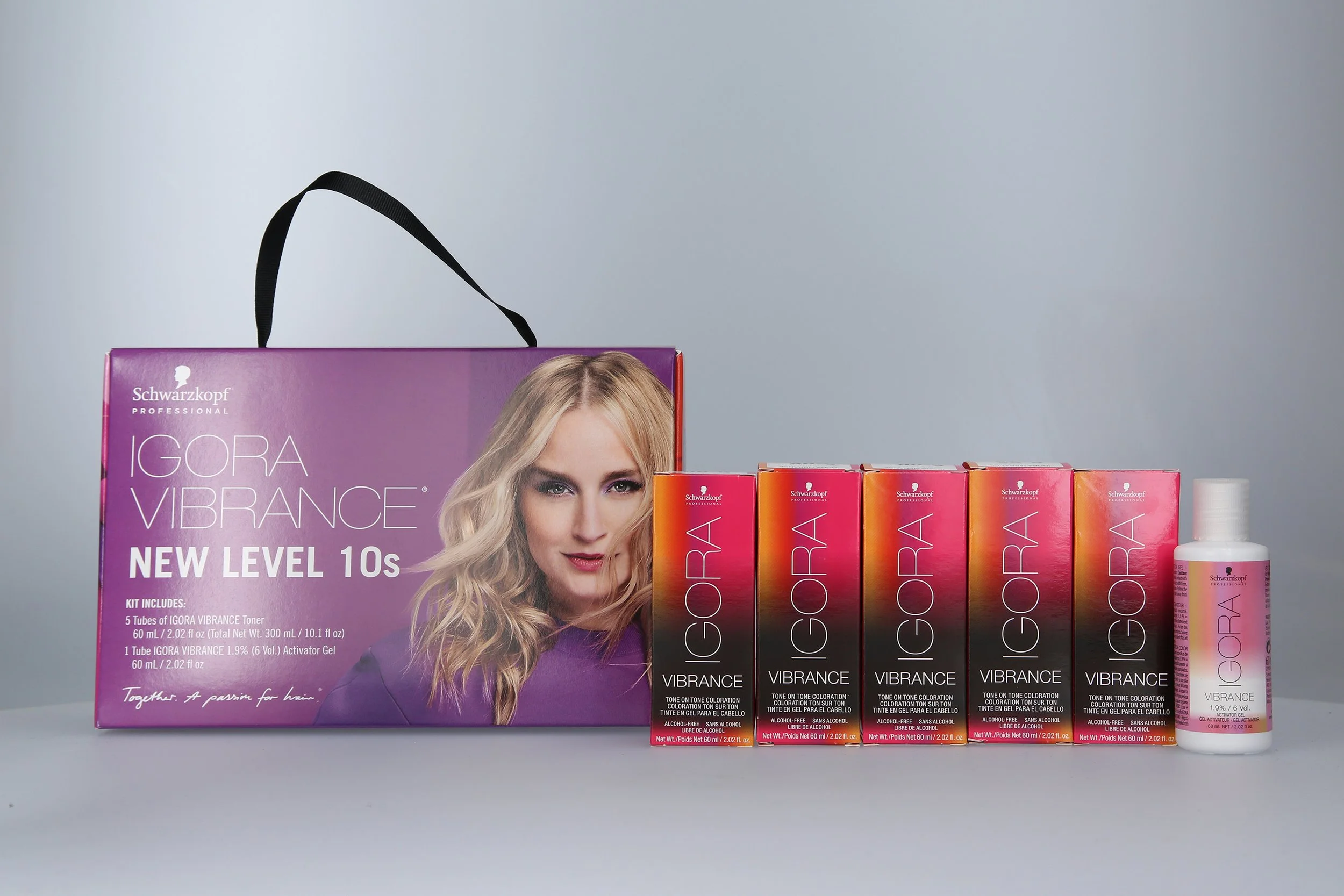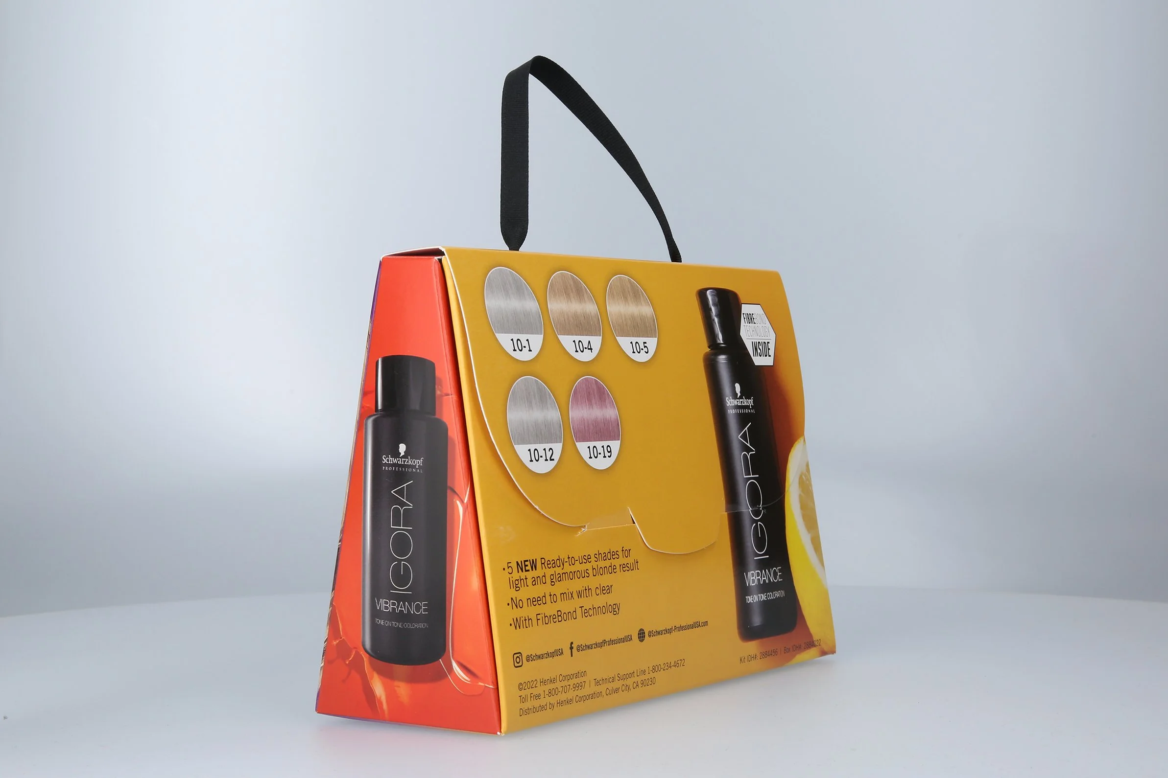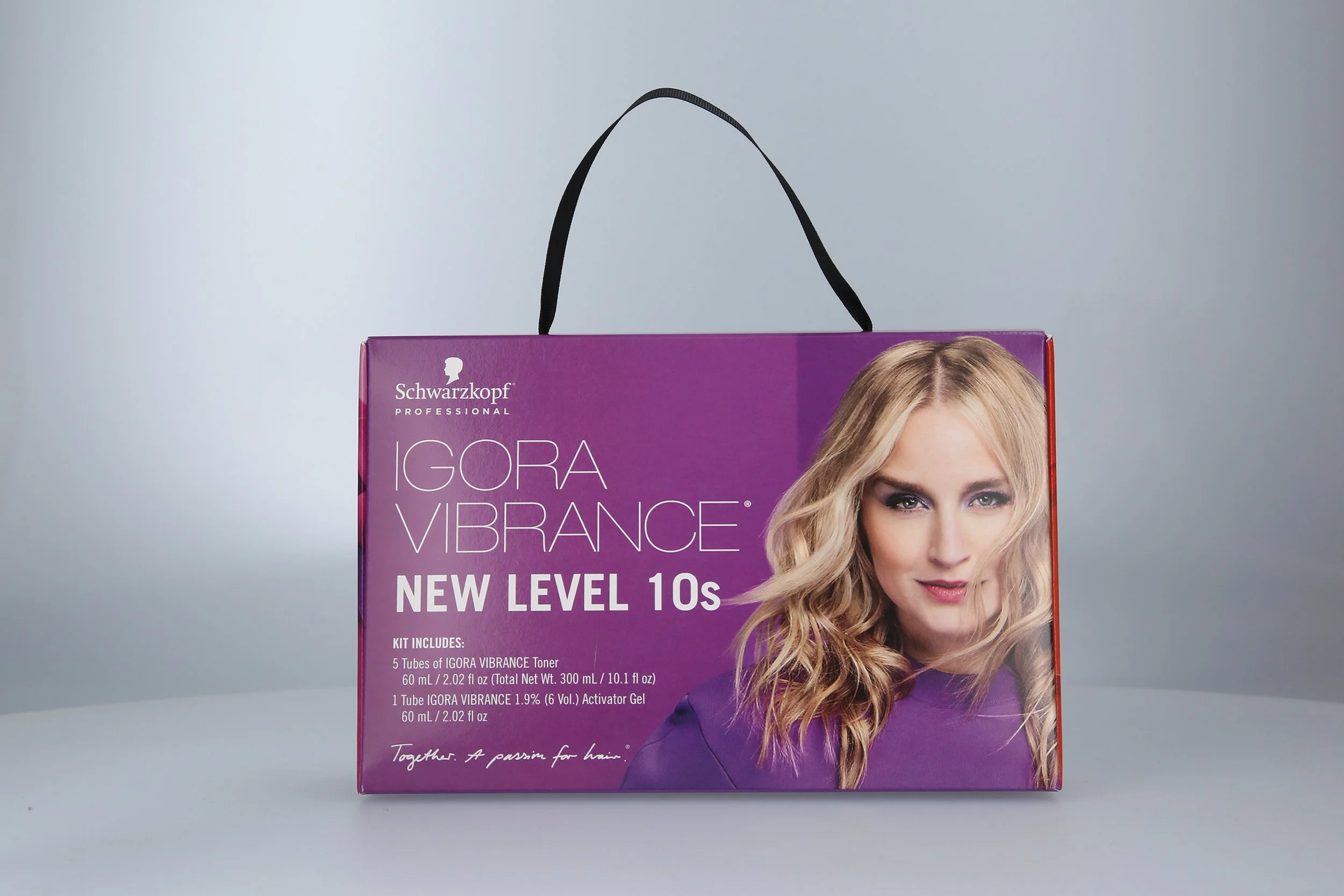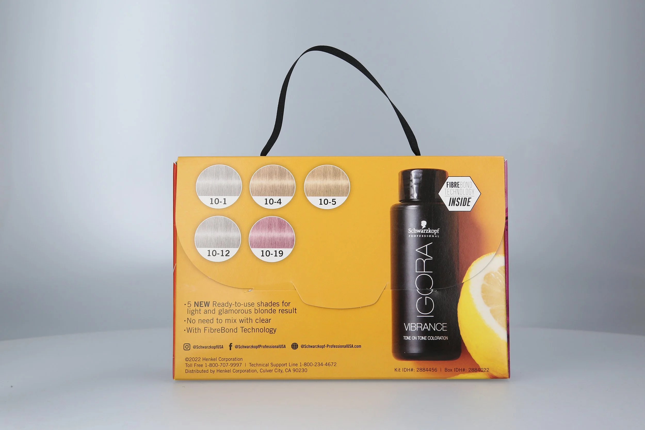 A promotional kit box I designed for the new Schwarzkopf Professional IGORA VIBRANCE Level 10s series launch for Schwarzkopf Professional hair products.