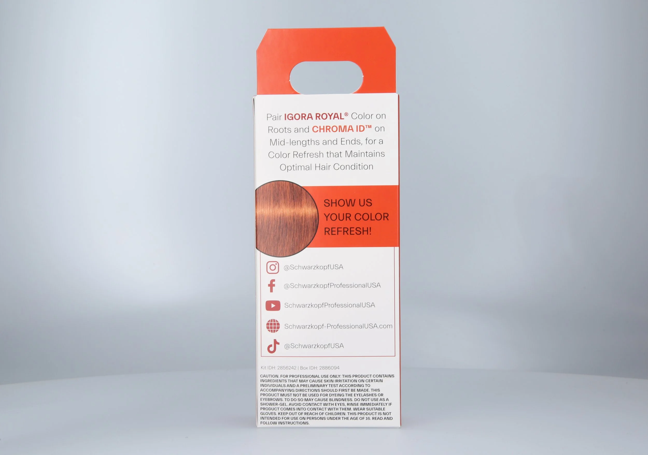 A kit box with hair dye from Schwarzkopf Professional CHROMA ID and IGORA ROYAL.